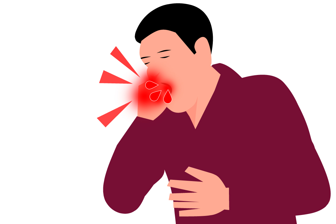 객혈은 기침을 할 때 기도나 폐로부터 혈액 또는 혈액이 섞인 가래를 배출하는 증상입니다. 객혈은 각혈이라고도 합니다. 입에서 배출된 혈액이 기관지의 출혈로 인한 것인지 코피와 같은 상기도 출혈로 인한 것인지, 위장관 출혈로 인한 토혈인지 구분할 필요가 있습니다. 이에 따라 진단 및 치료 방향이 달라지기 때문입니다. 객혈은 호흡기인 기도나 폐로부터의 출혈을 의미하고 토혈은 상부 소화기관인 식도나 위 등으로부터의 출혈을 의미합니다. 그러나 공기가 통과하는 기관지나 음식물이 통과하는 식도는 후두부에서 서로 만나서 인두와 구강으로 이어지기 때문에 간혹 객혈과 토혈의 감별이 어려운 경우도 있습니다. 일반적으로 객혈은 기침을 동반하고 선홍색이고 거품이 있는 객담과 혼합되기도 합니다. 이에 반해 토혈은 구토를 동반하며 비교적 검붉은 색이고 흔히 음식물과 혼합되어 있습니다. 대량 객혈의 경우 혈액이 폐포 내로 흡인되어 기도 안에서 응고되면 질식으로 인한 저산소혈증으로 사망으로 이어질 수 있습니다. 객혈의 경우 전체적인 양보다 그 속도가 중요합니다. 시간당 100ml 정도의 객혈이 배출되면 질식이나 쇼크의 위험이 있습니다. 24시간 동안의 객혈의 양이 20mL 이하는 소량 객혈, 100ml 이하는 중등도 객혈, 100ml 이상은 대량 객혈로 구분합니다.
